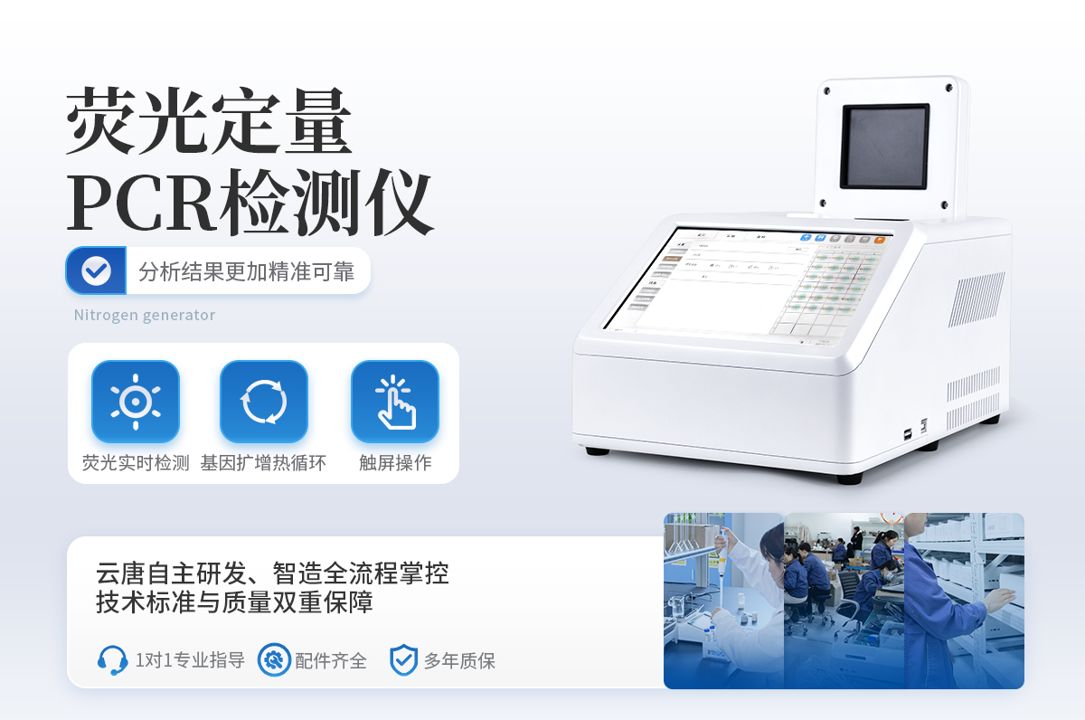 YT-P08型號(hào) 實(shí)時(shí)熒光定量PCR儀器的原理:聚合酶鏈?zhǔn)椒磻?yīng)(polymerase chain reaction,PCR)是一種用于放大擴(kuò)增特定的DNA片段的分子生物學(xué)技術(shù),它可看作是生物體外的特殊DNA擴(kuò)增,由高溫變性、低溫退火及適溫延伸等幾步反應(yīng)組成一個(gè)溫度循環(huán)周期,使目的基因得以迅速擴(kuò)增,具有特異性強(qiáng)、靈敏度高、操作簡(jiǎn)便、省時(shí)等特點(diǎn),是基因擴(kuò)增技術(shù)的一次重大革新。PCR技術(shù)可將極微量的目標(biāo)DNA特異地?cái)U(kuò)增上百萬(wàn)倍,從而大大提高對(duì)DNA分子的分析和檢測(cè)能力。